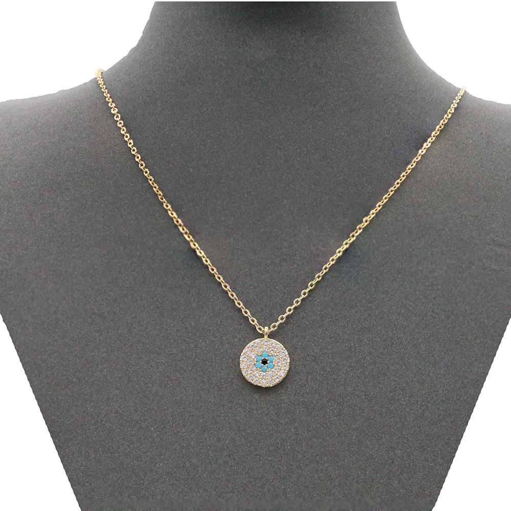 Gold Plated With Clear CZ Evil Eye Necklace.16"+3"