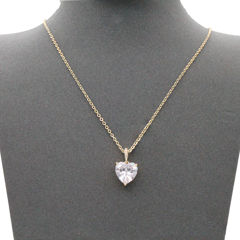Gold Plated With Clear CZ Heart Necklace. 16"+3"