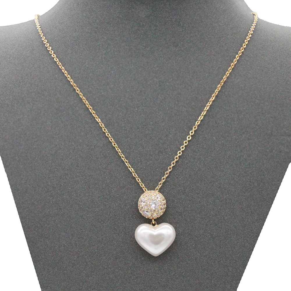 Rhdoium With Clear CZ Heart Pearl Necklace. 16"+3"