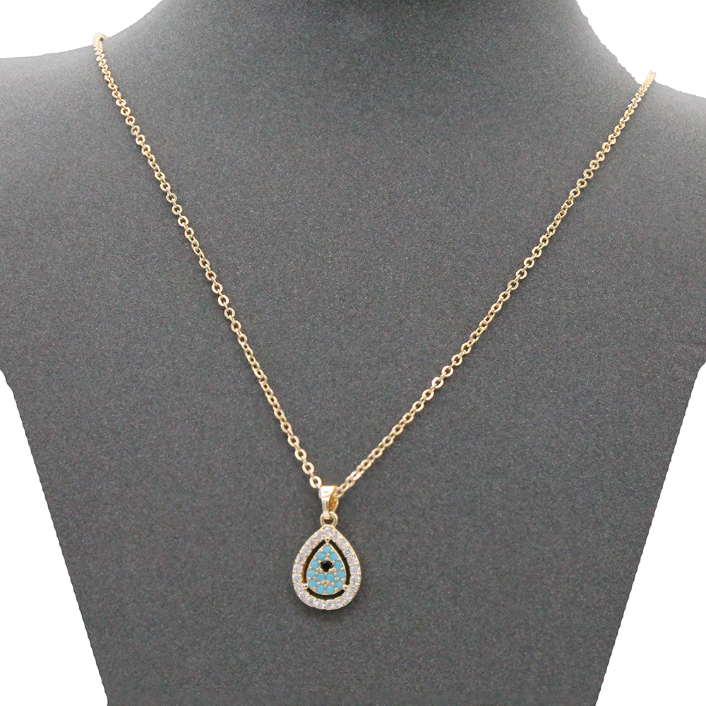 Rhodium Color With Clear CZ Evil Eye Necklace. 16"+3"