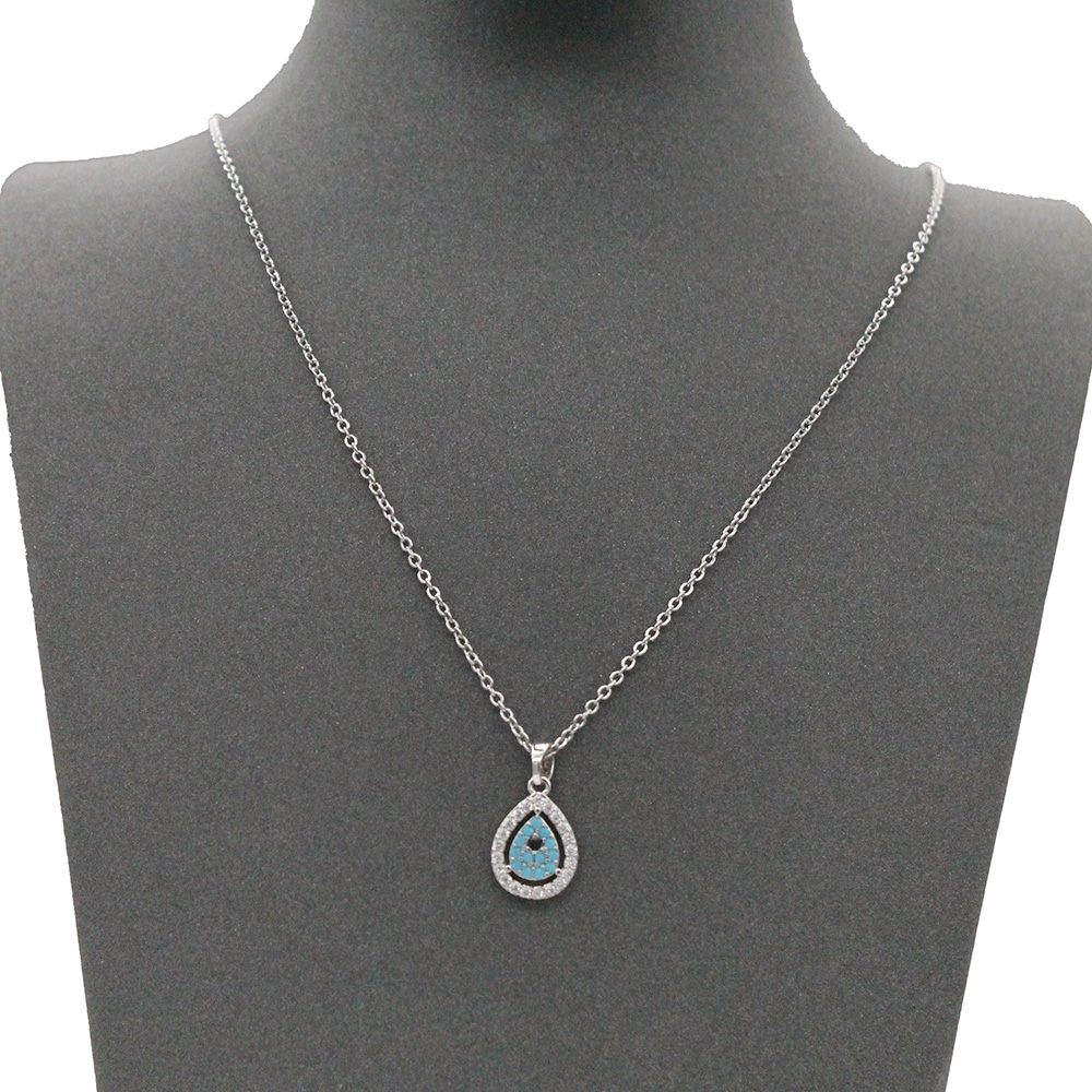 Rhodium Plated With Clear CZ Evil Eye Necklace. 16"+3"