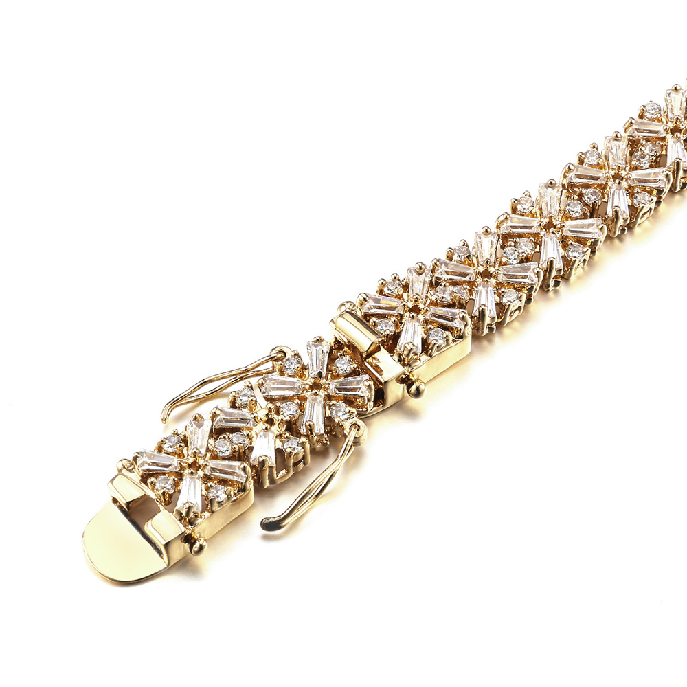 Gold Plated Luxury Clear Baguette-Cut Trendy Design AAA CZ Bracelet Tennis Bridal Wedding Party Jewelry